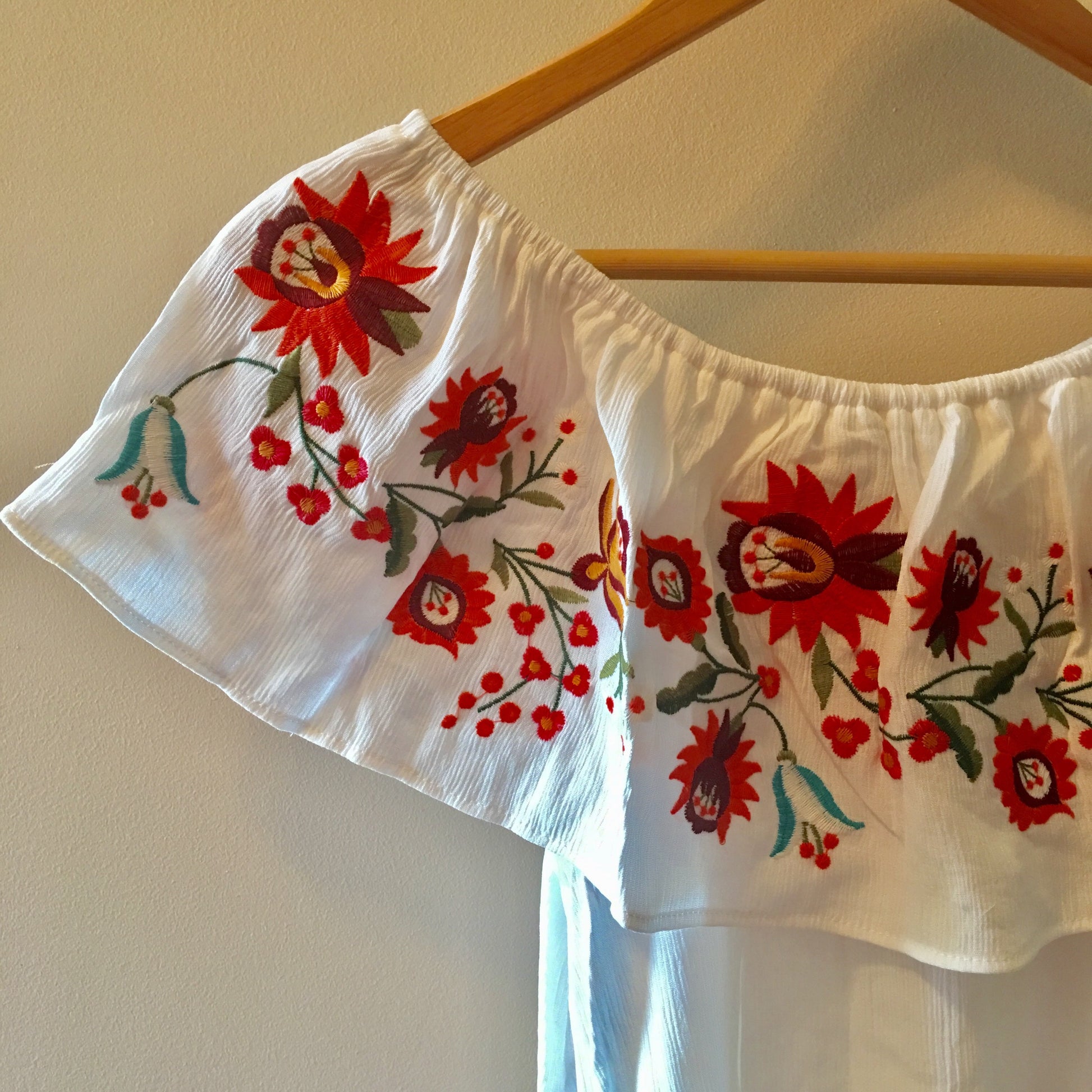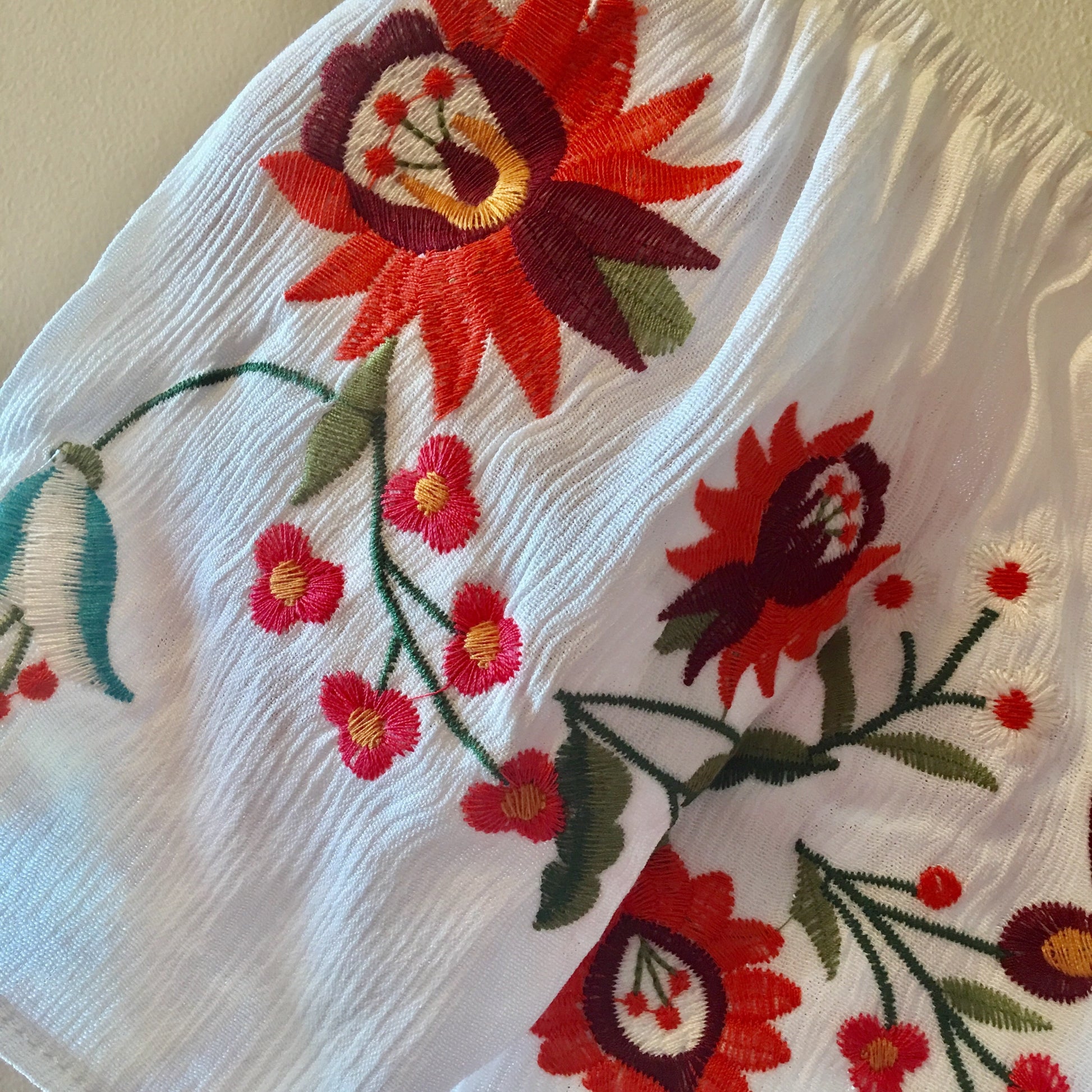 The Cabo Off the Shoulder Top is so fun! The elastic neckline makes sure this top stays put! The embroidery is gorgeous!