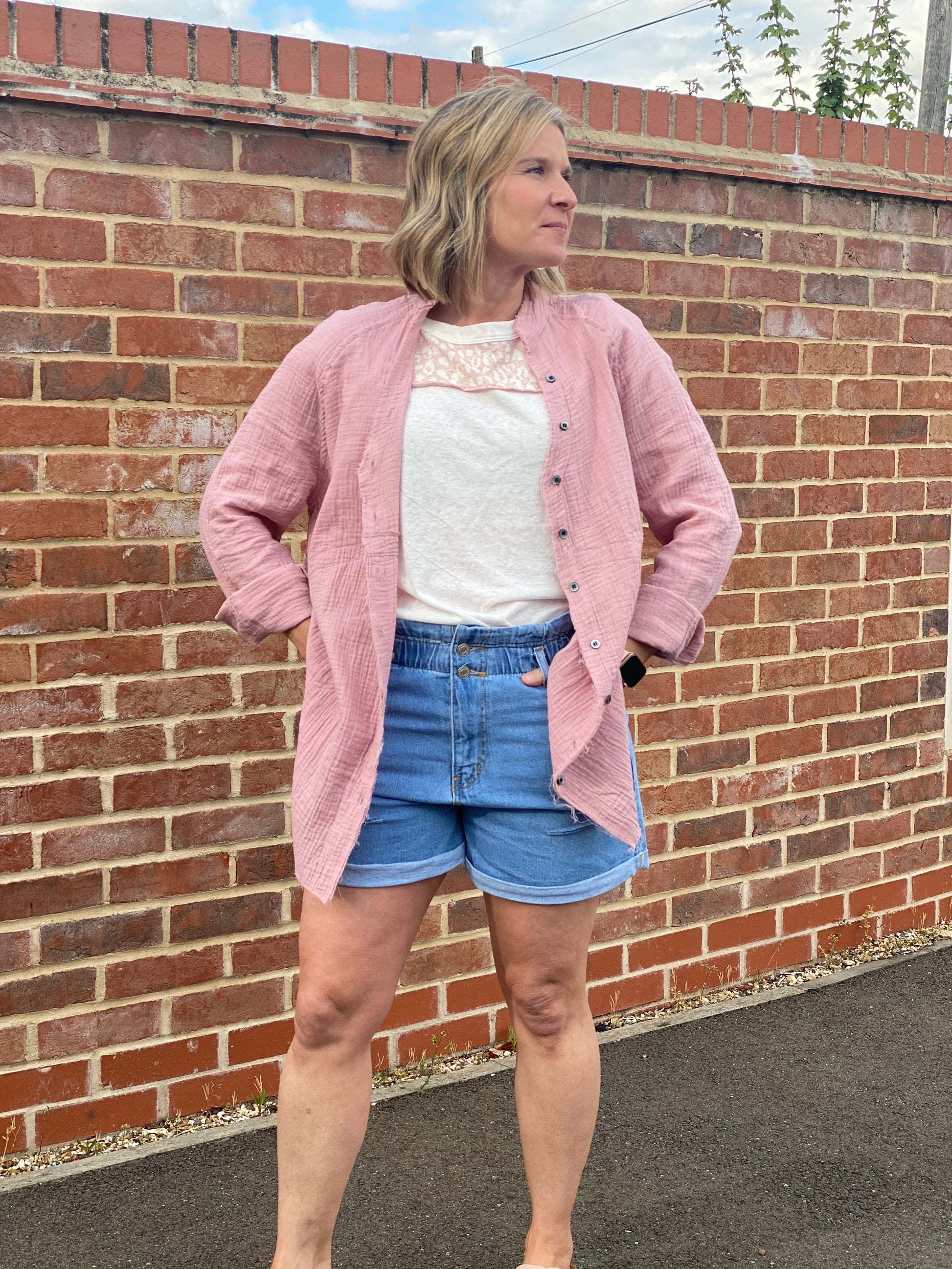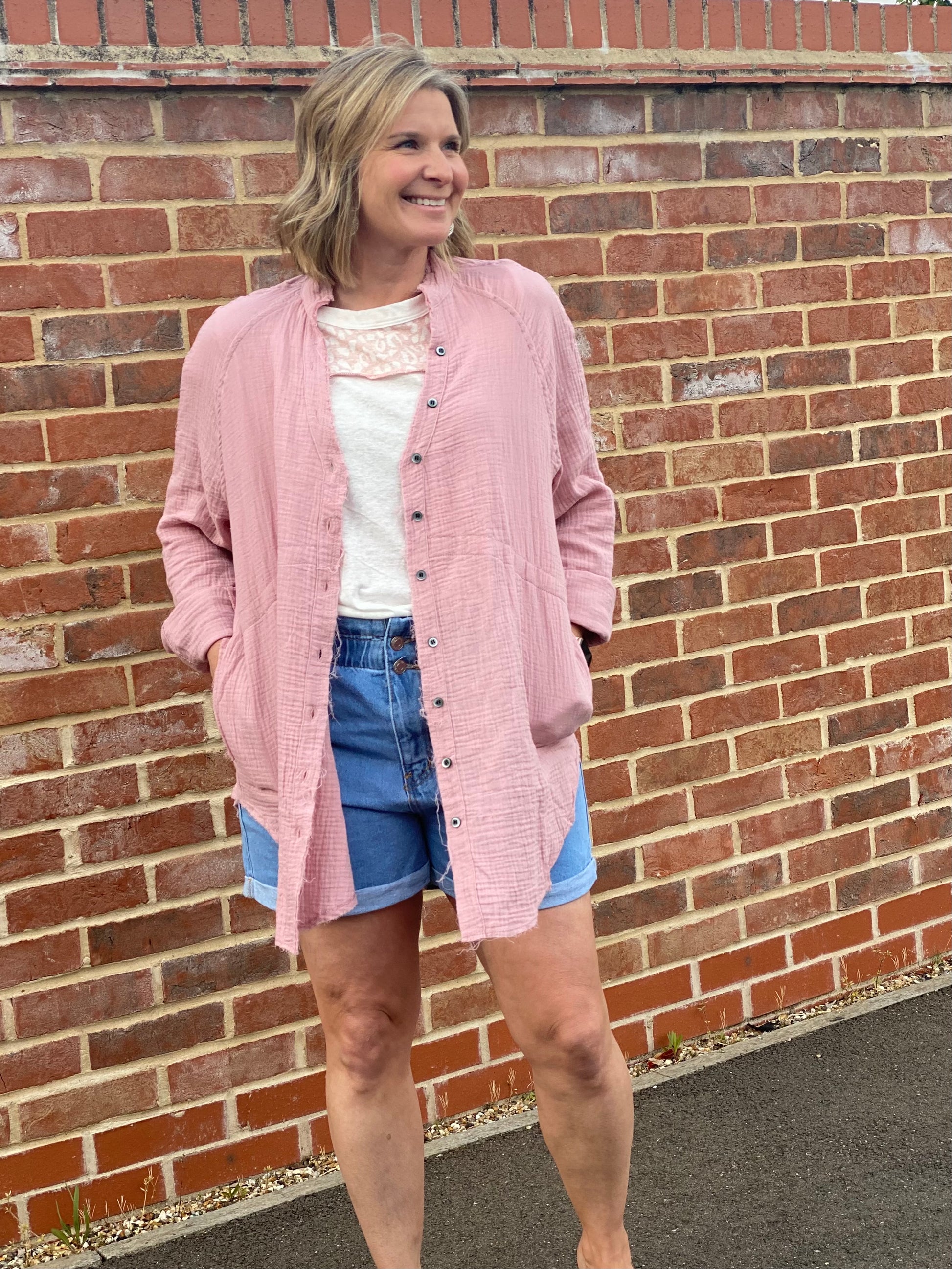 Feeling trendy and yet wanting to be comfortable at the same time? Then the Hadley button down is the shirt for you :) The Hadley is a plush, over-sized button down shirt that offers a v-neck for that feminine touch.