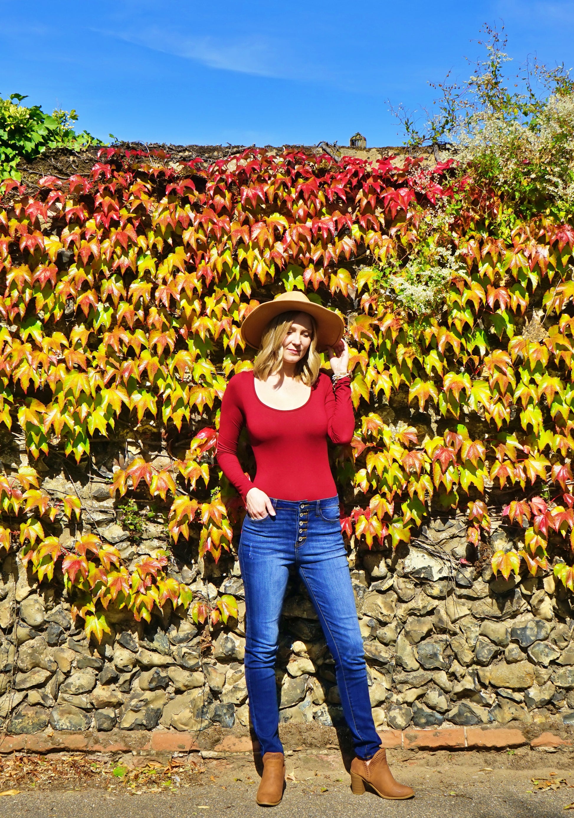 Our Merlot dipped bodysuit is extremely comfortable, has a great stretch to it, and has a dipped neckline that is really flattering. It is the perfect wine color for fall and goes great with our Grace cardigan.