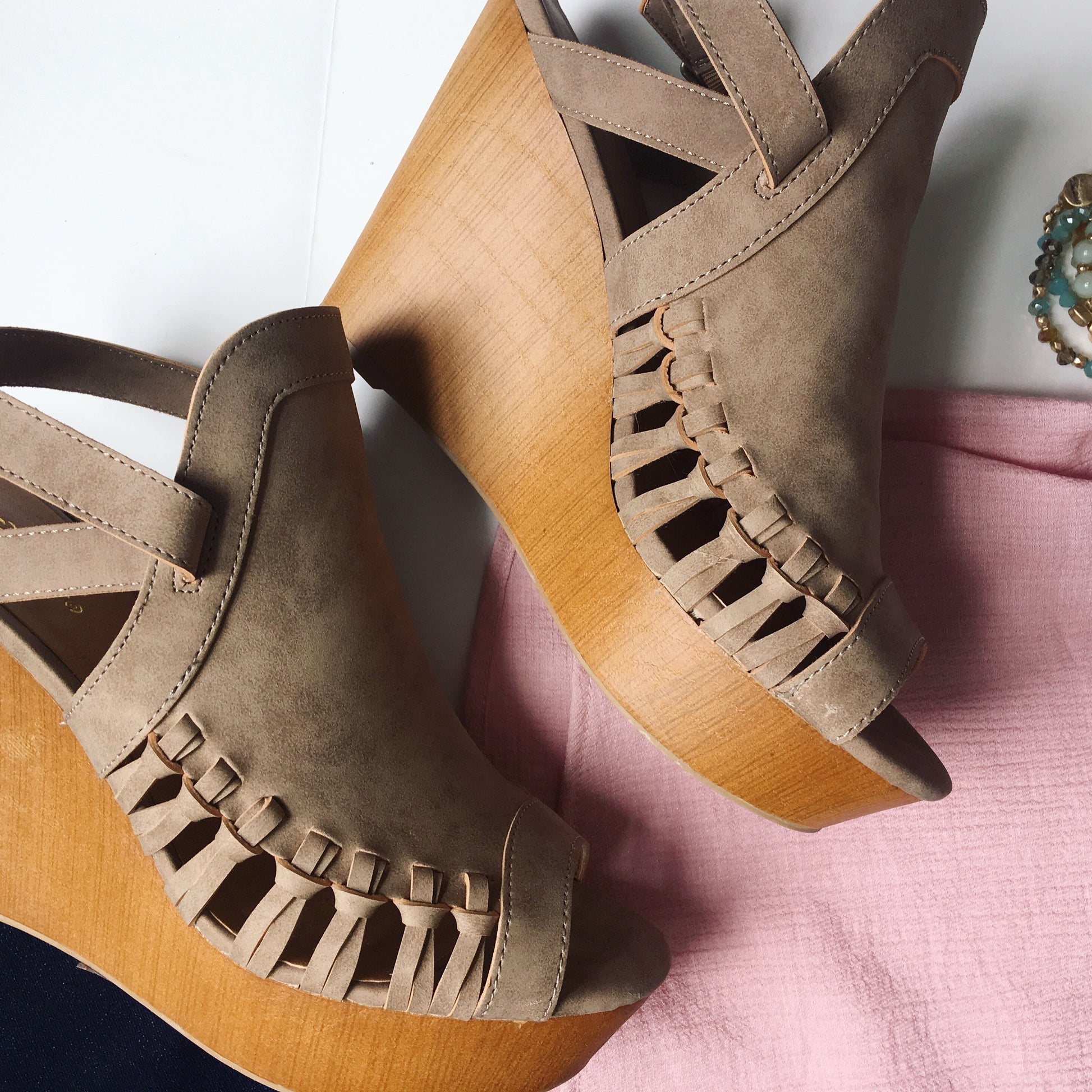 Every woman needs a staple go-to wedge heel in their closet! Look no further because these babies are so cute! We love the peep toe and backless heel. They go perfectly with our new Bell Denim and Everyday Blush Top pictured above. We also love them with our Brooke and Brianna Jean!