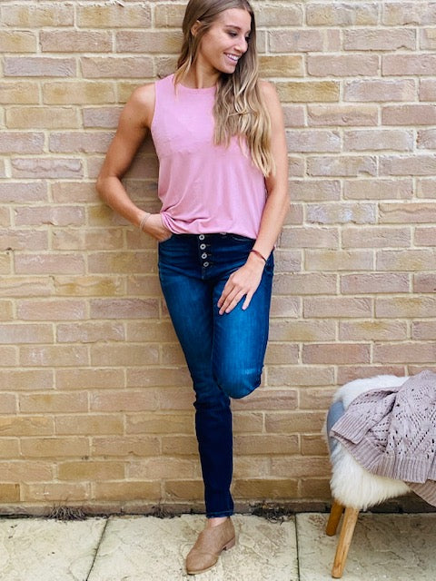 These button-down beauties are the perfect jean for all heights! If you are on the taller side these jeans are the perfect skinny fit and if you are 5'6 and shorter a great jean to roll and rock your favorite flats!!