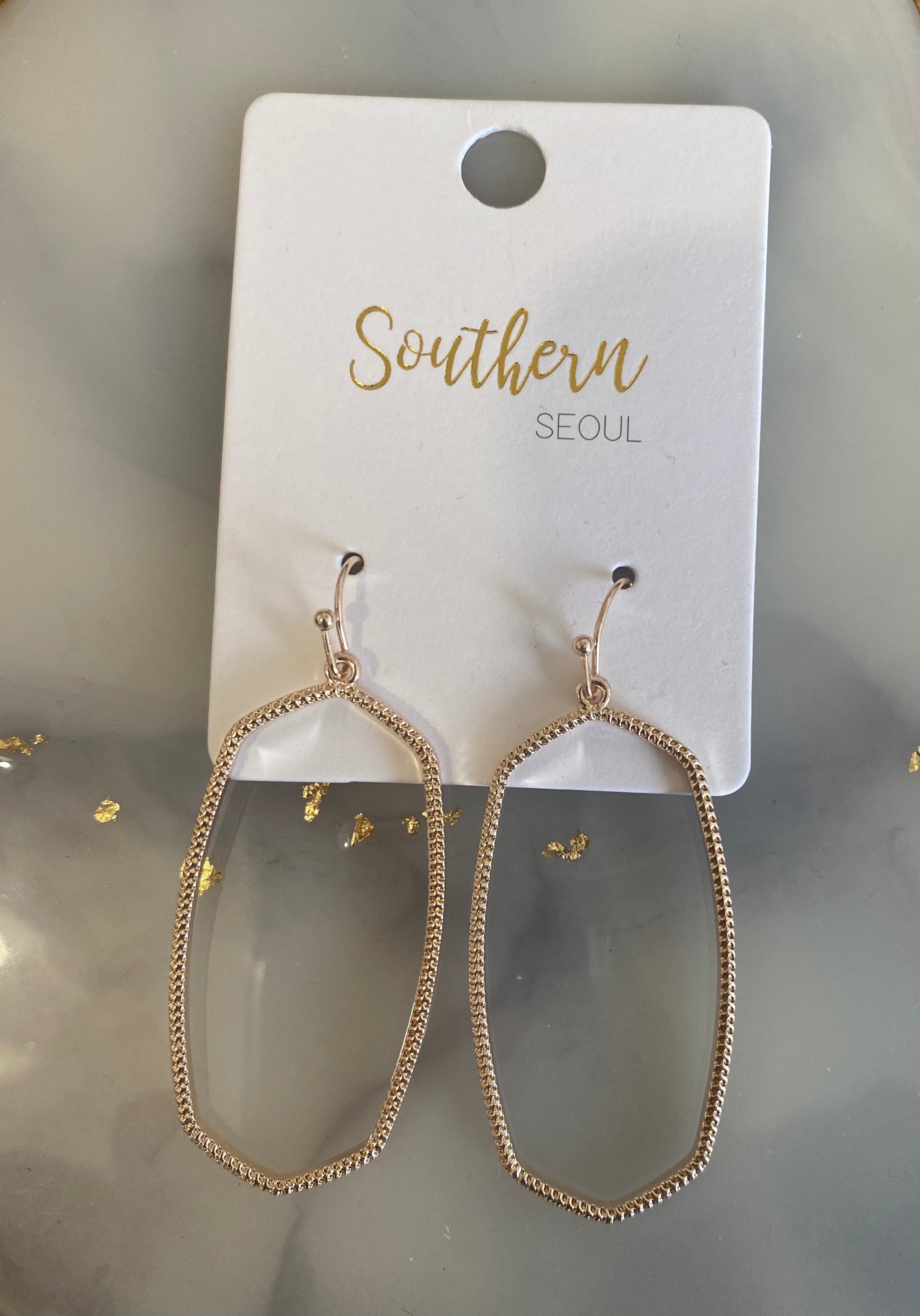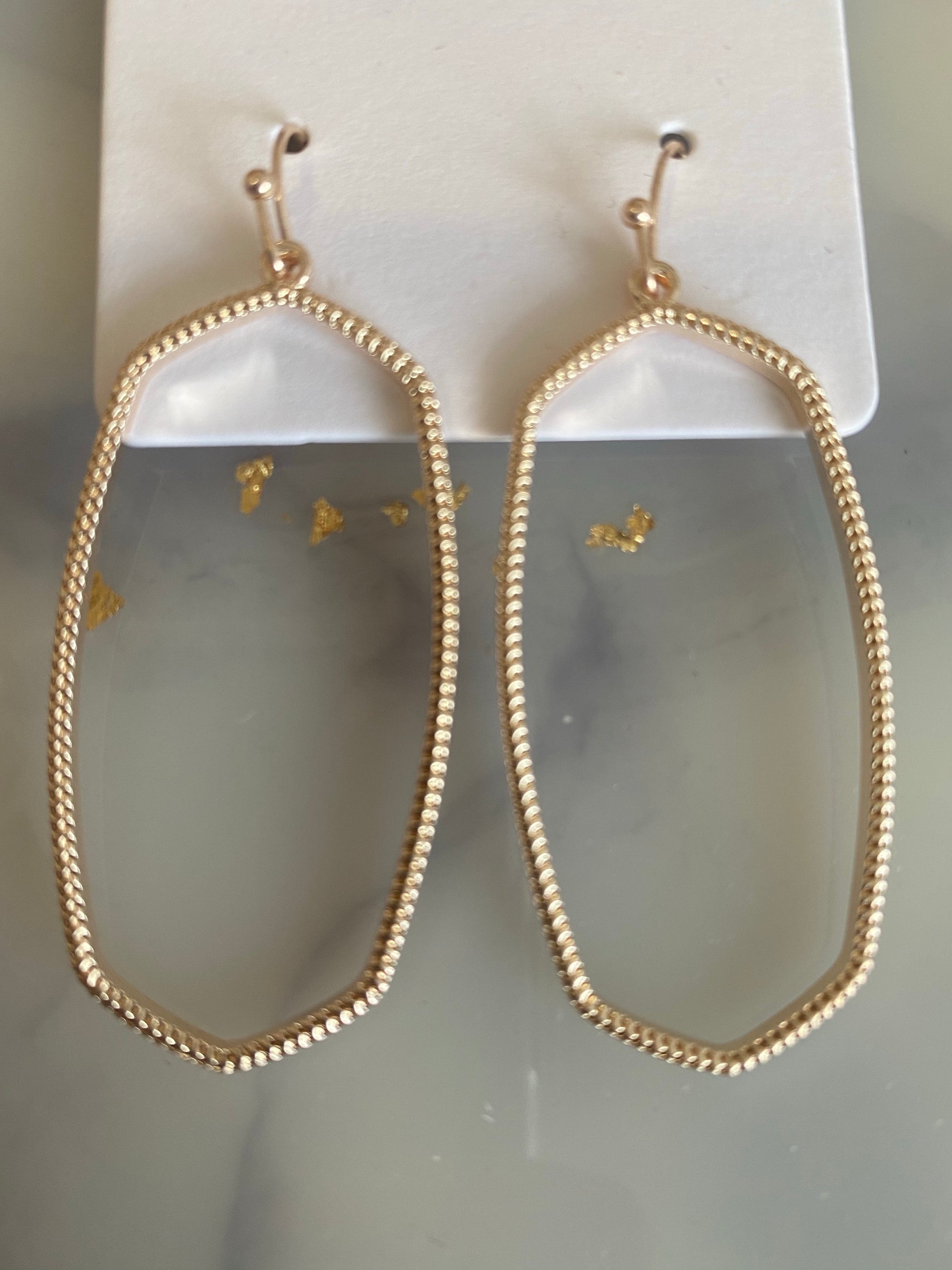 These beautiful, lightweight rose gold dangle earrings are stunning! Very simple warring with a filigree design on edges, open in the center and a clear back.