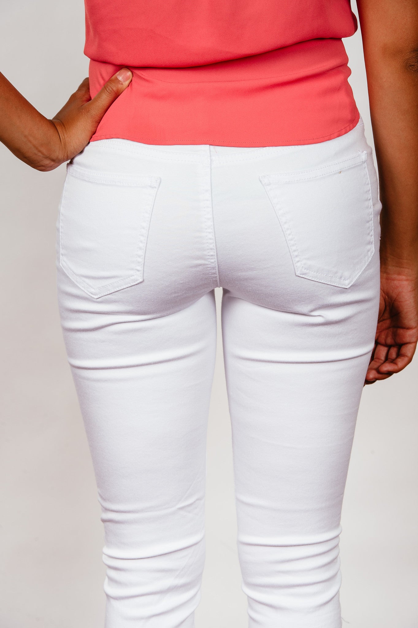 These distressed white skinnies boast torn knees and have an impeccable fit. Made with a hint of spandex (everyone's bestie), they fit like a glove!